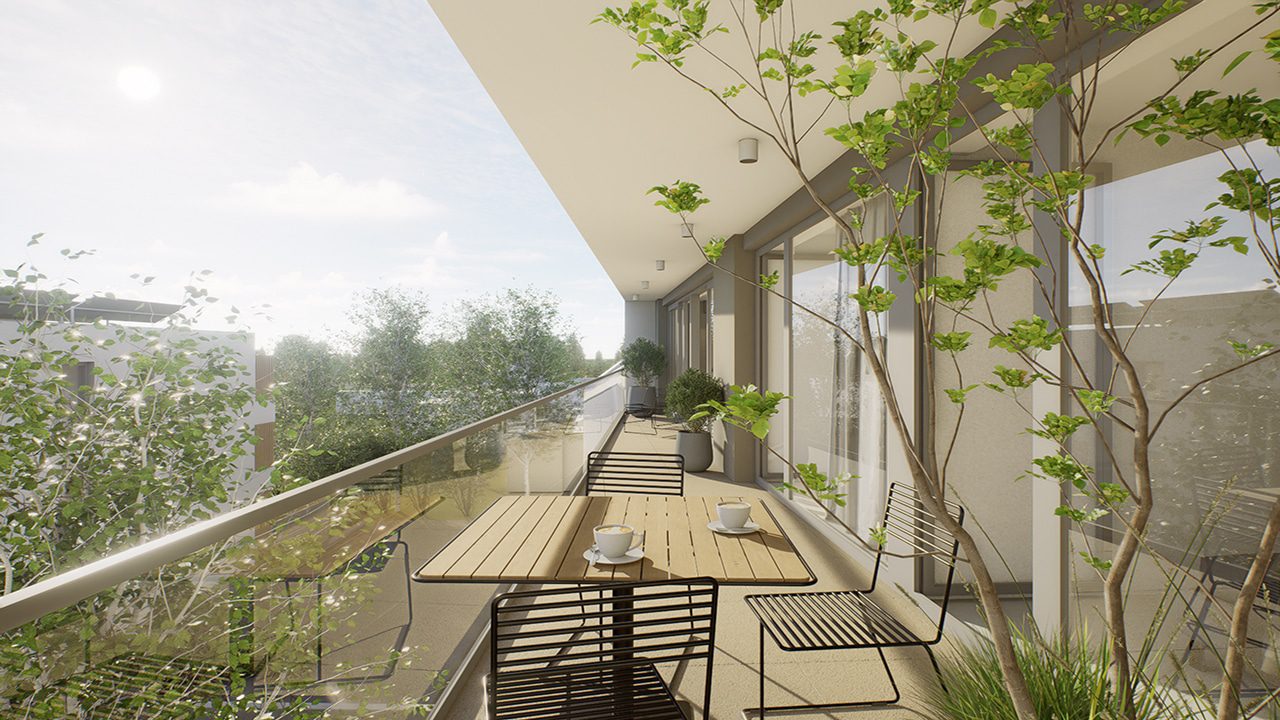 Společně se zkušenými architekty se podařilo vytvořit moderní budovy a velkou mírou prosklení. Navazující okolní zahrada se stane komunitním místem pro všechny majitele bytu. Parkovací místa jsou naprojektována pod budovou a vás tak nebude rušit pohled na stojící vozidla.